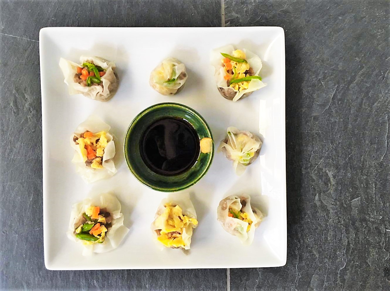 炒り玉子の黄色にえんどう豆の緑、にんじんの赤色。彩り豊かな、見た目にも華やかなしゅうまいです。