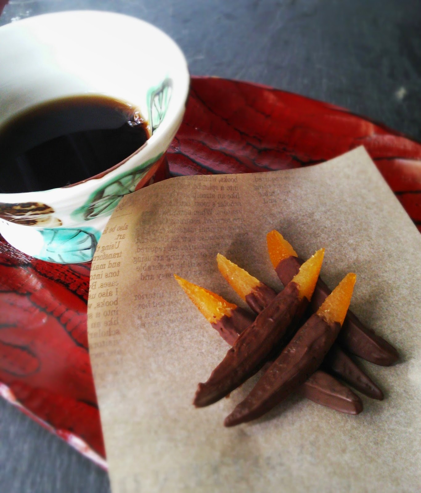 蜜漬けにしたオレンジピールをほろ苦いビターチョコでコーティング。
